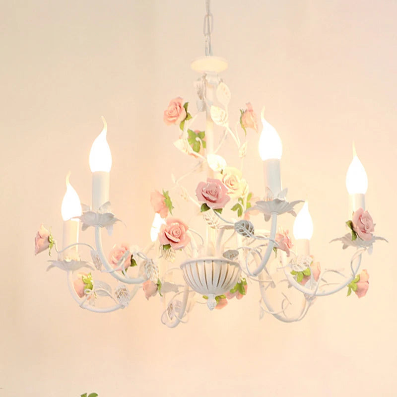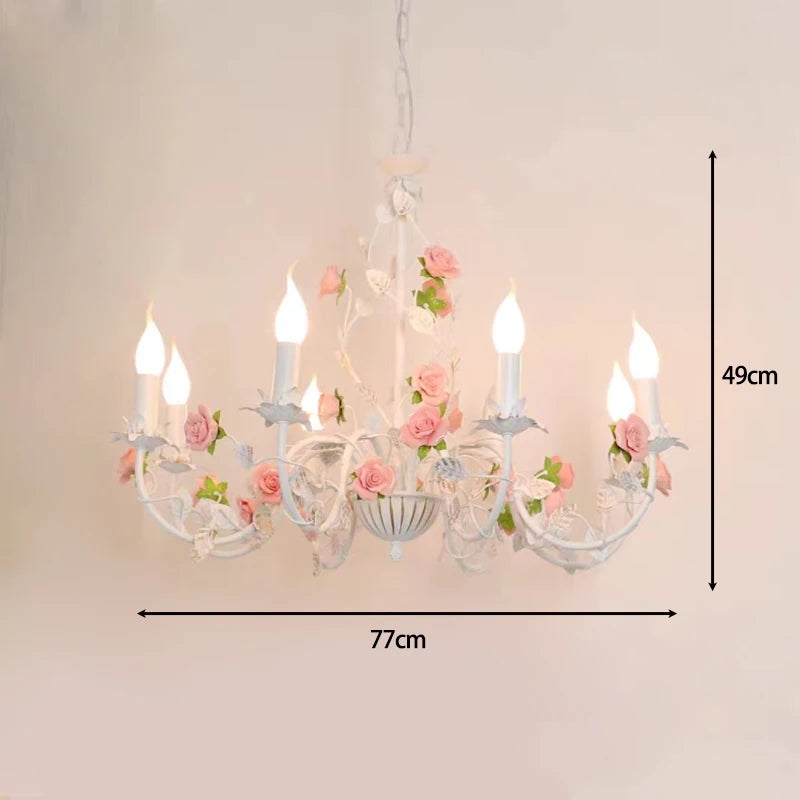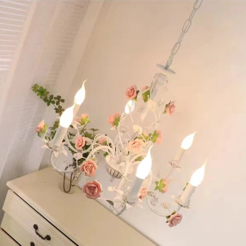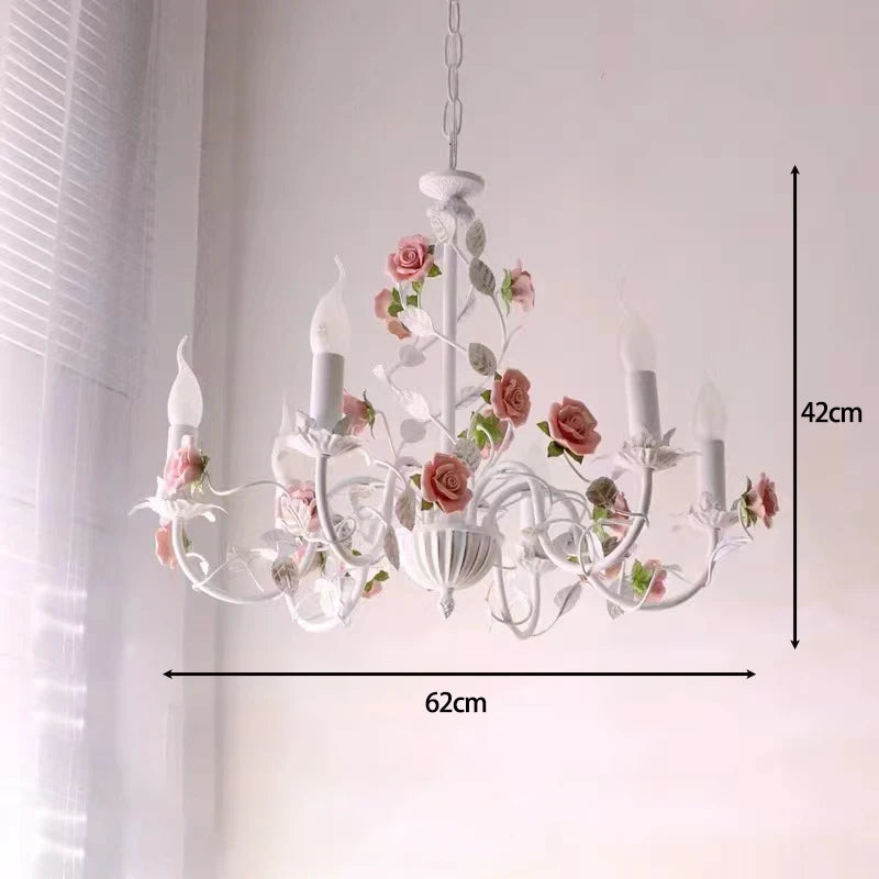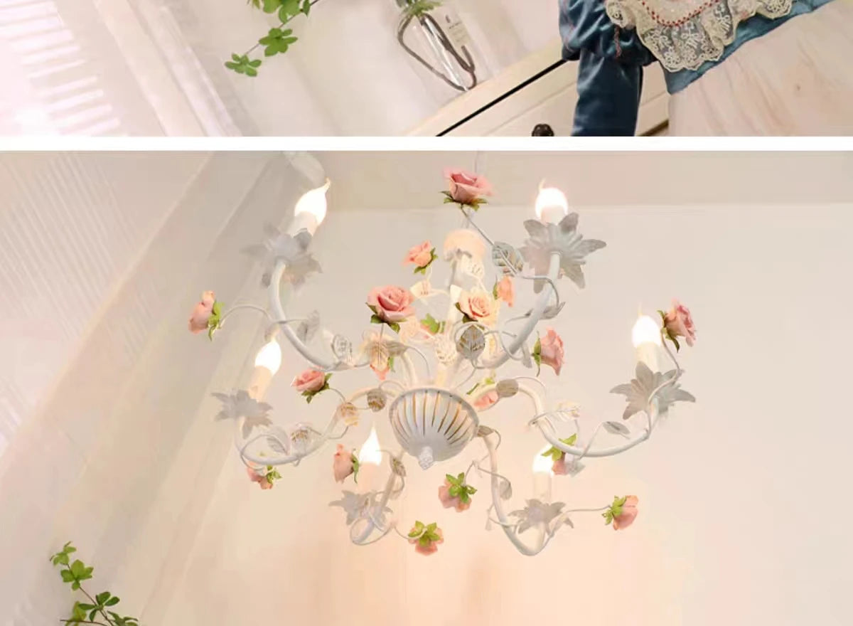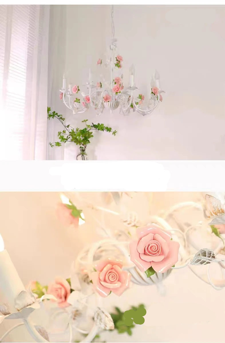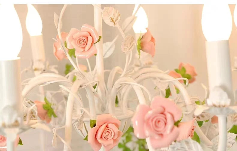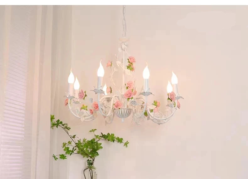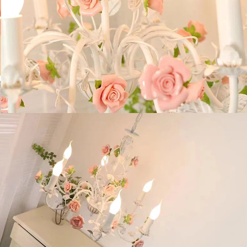 Transform your space with the charm of the French Pastoral Rose Chandelier, a beautifully crafted vintage-style floral lighting fixture. Designed with delicate handcrafted rose accents, this chandelier brings a touch of romantic elegance to any bedroom, living room, dining area, or princess-themed space. The retro American-inspired design paired with warm candle-style lights creates a cozy and enchanting ambiance, perfect for classic and shabby chic interiors.