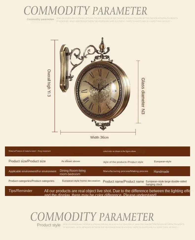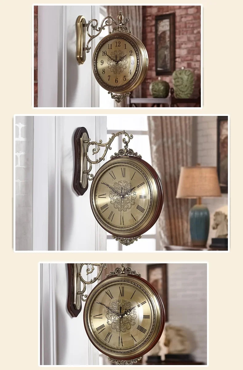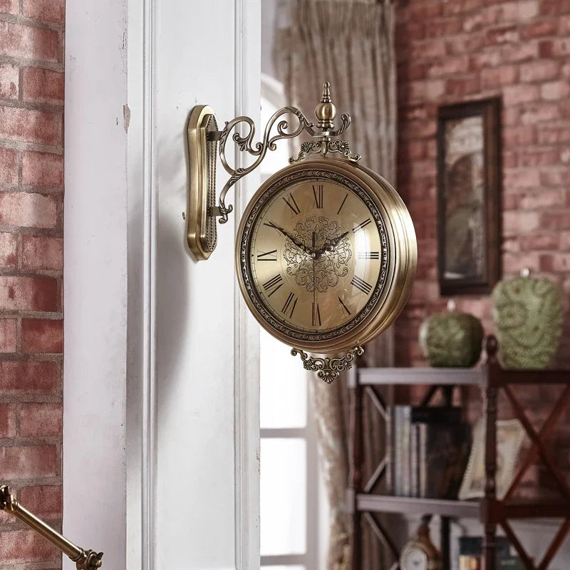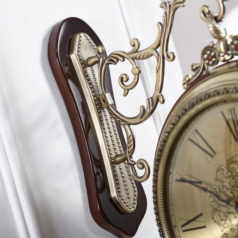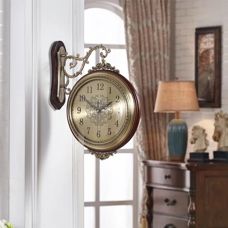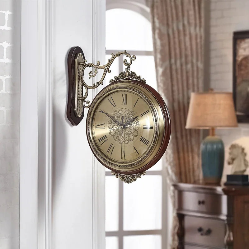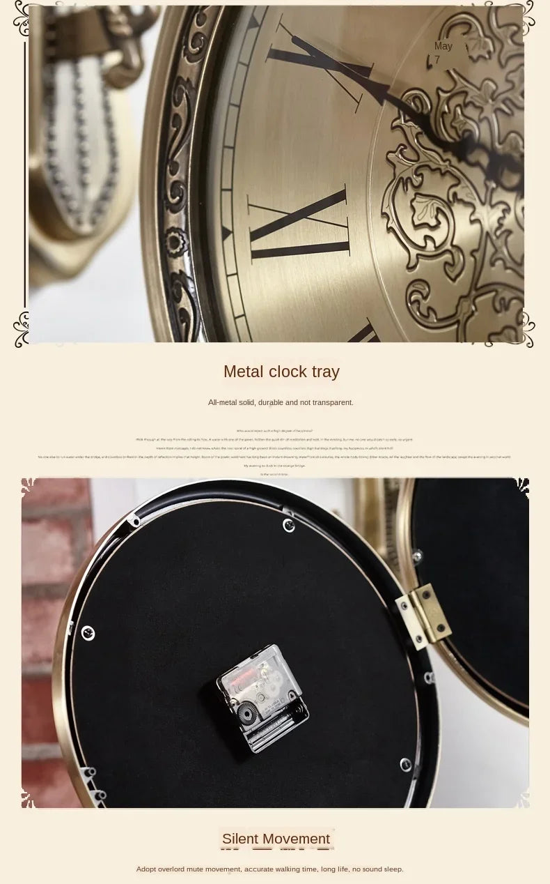 The Double-Side Silent Wall Clock is a striking blend of luxury and functionality, designed to enhance any living room or home decor. Crafted from solid wood and metal, this large clock features a unique double-sided design, making it both practical and decorative. The retro golden accents add a touch of elegance, while the silent mechanism ensures a peaceful environment. Perfect for Nordic and luxury-inspired interiors, this clock is a stunning home decoration and a thoughtful gift for those who appreciate high-quality craftsmanship and timeless design.