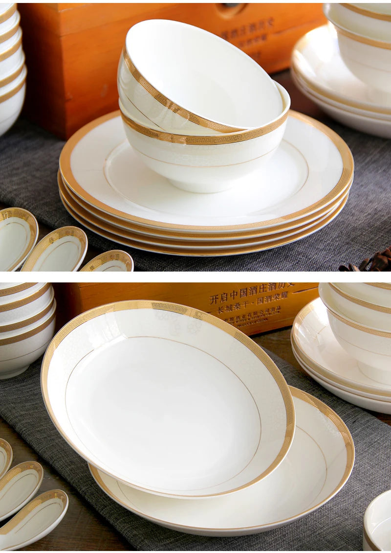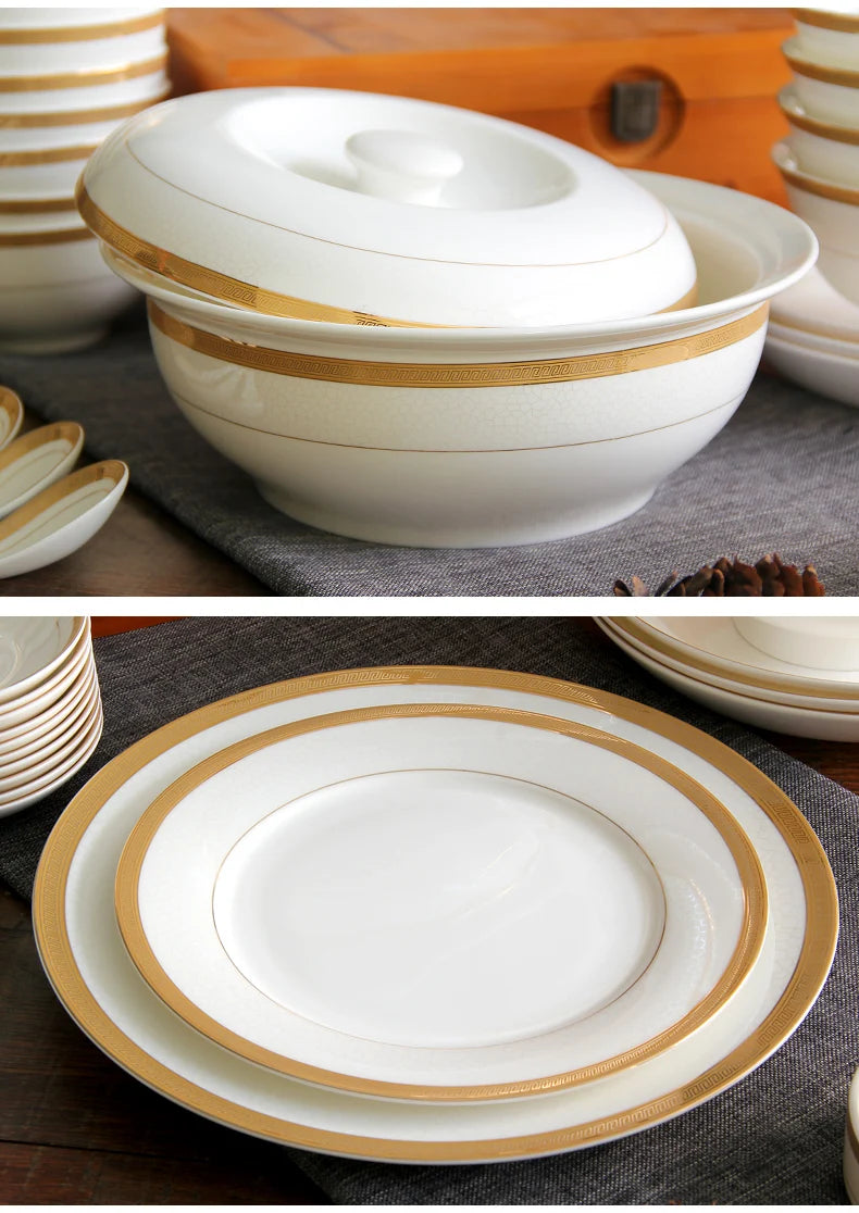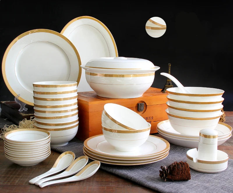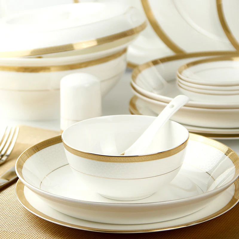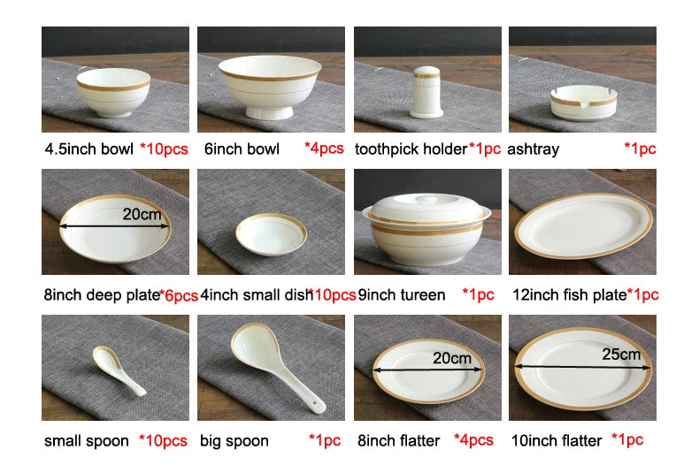 Elegant Golden Striped Design: This dinnerware set features a timeless golden striped pattern that adds a touch of luxury and refinement to your dining table. The gold accents elevate any meal, making it perfect for formal dinners, special occasions, or upscale restaurants.