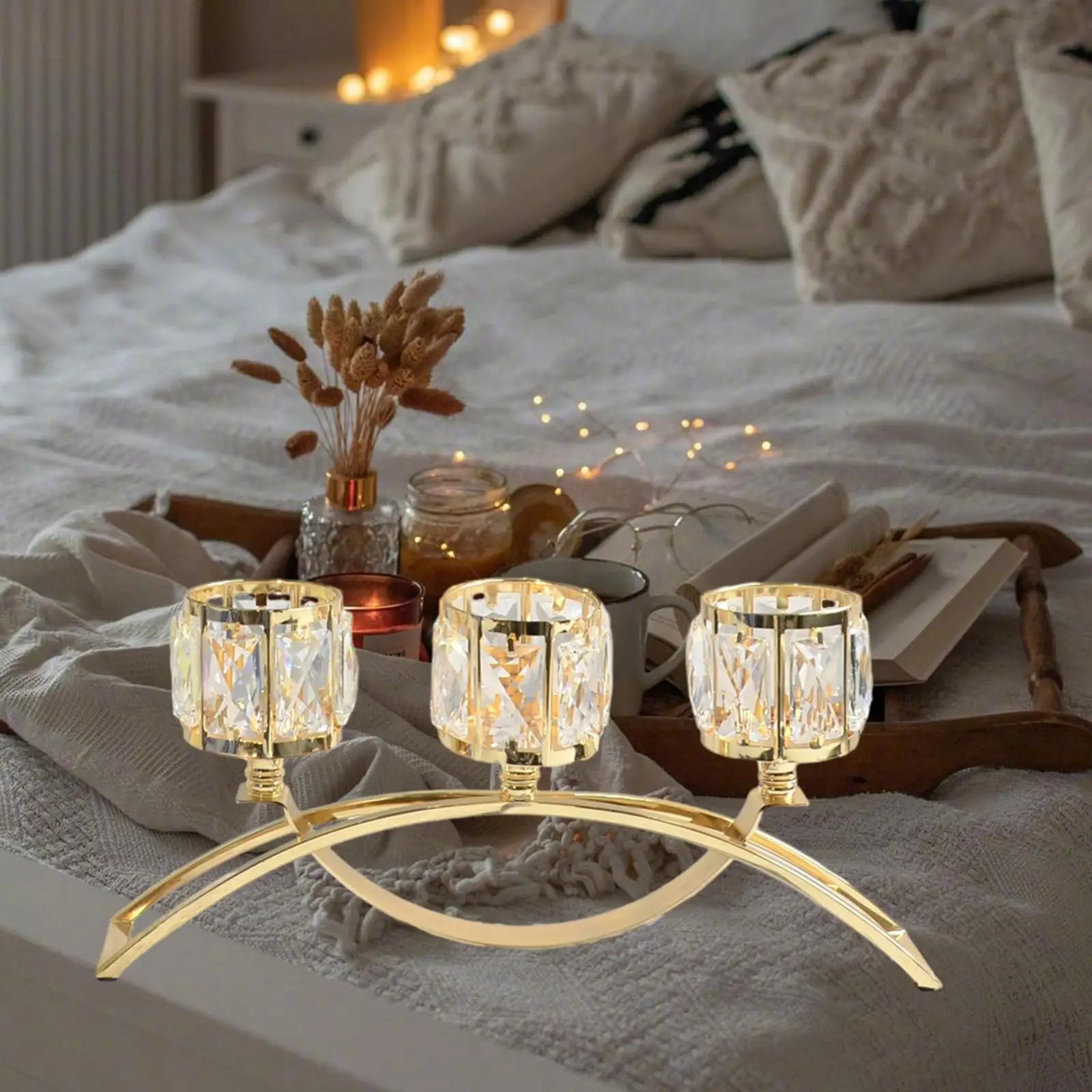 This 3-arm tealight candelabra is crafted from high-quality iron with a sleek, polished finish, making it an exquisite addition to any home or event decor. The curved metal base ensures durability while maintaining a lightweight and elegant design.
