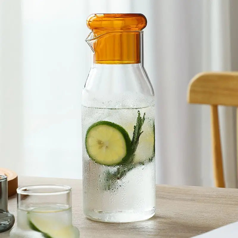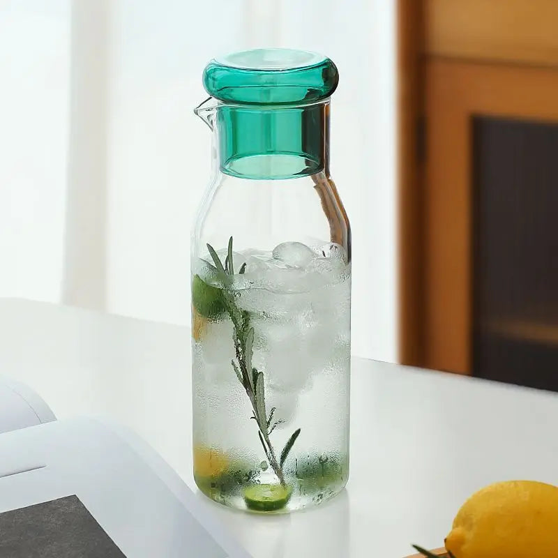 Add a pop of color to your nightstand with this stylish and practical pitcher and cup set. Designed for convenience, the tumbler doubles as a lid, keeping your drink fresh and dust-free. Made from durable, heat-resistant glass, it's perfect for water, juice, tea, or any beverage. Ideal for bedrooms, offices, kitchens, or hotels, this set combines functionality with modern elegance. Easy to clean and dishwasher safe for hassle-free use.
