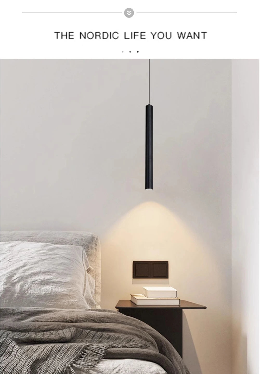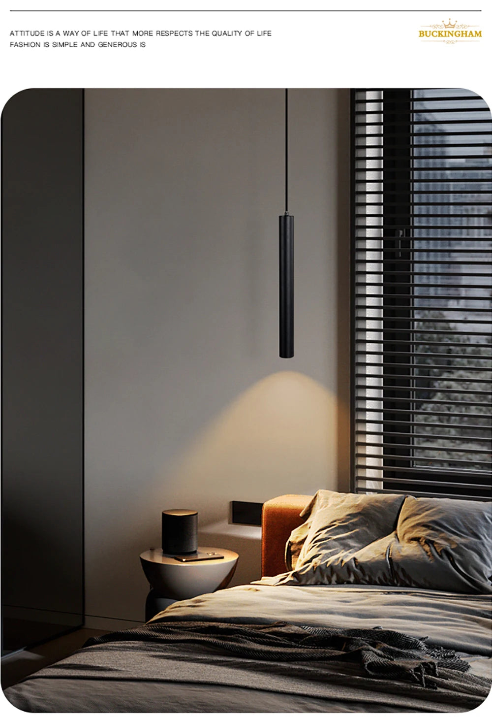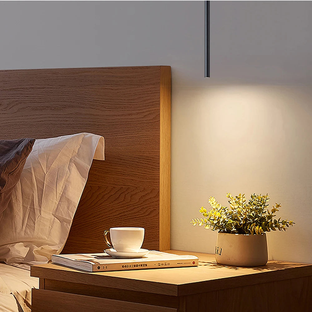 Ideal for various spaces, including bedrooms, living rooms, and dining areas. This LED pendant light serves as a stylish ceiling fixture, enhancing room decor with its sleek cylindrical design. Perfect for modern interiors, it provides both functional illumination and an elegant touch to any space.