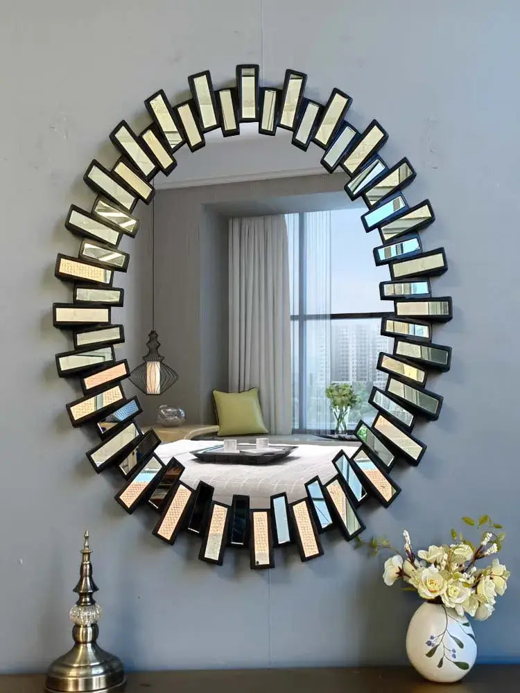 Elevate your home with our Large Wall Art Mirror, a perfect blend of functionality and artistic expression. This mirror is not just a reflective surface, but a captivating piece of art that transforms any wall into a visual masterpiece. Its expansive size and sleek design make it the ideal statement piece for any room, from living areas to entryways. The mirror’s modern style effortlessly complements a variety of décor themes, adding depth, light, and a sense of spaciousness to your space. Crafted with attention to detail and built to last, this mirror is more than just an accessory—it's a focal point that enhances the beauty and ambiance of your home.