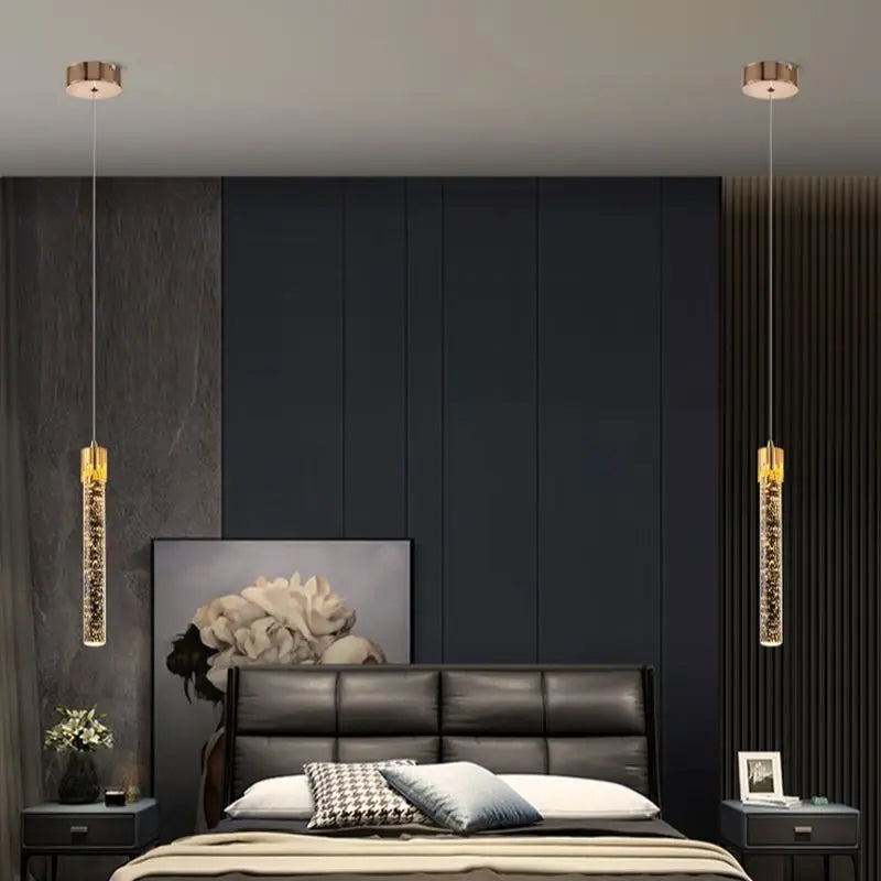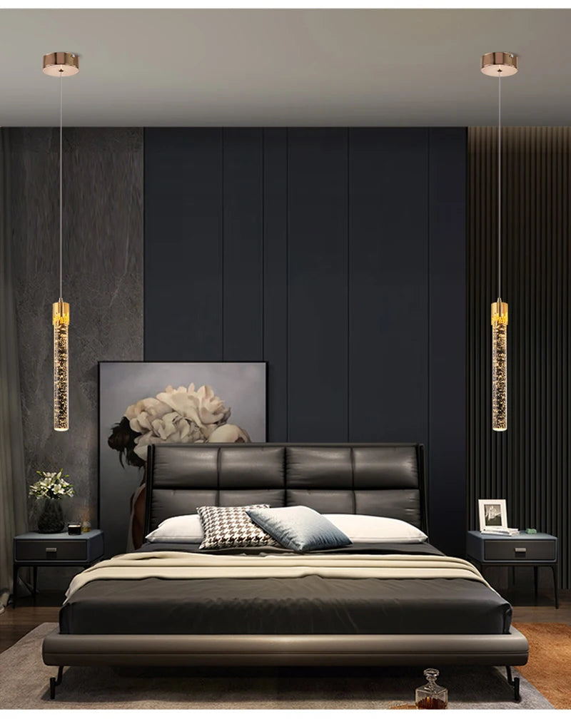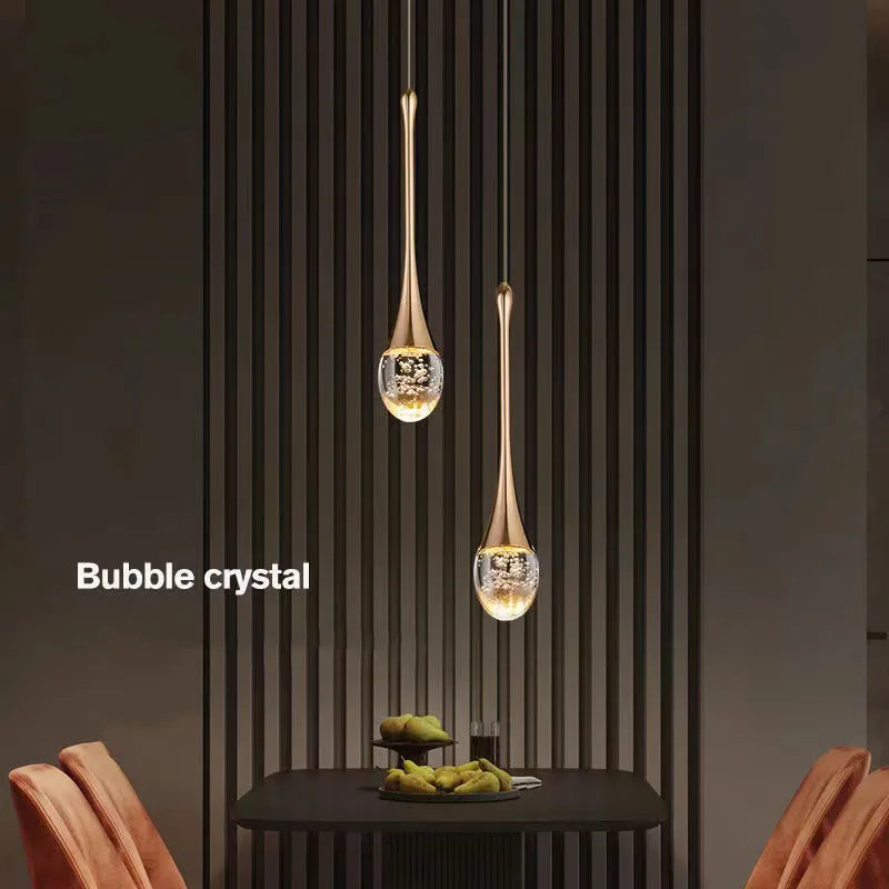 Enhance your space with the Modern LED Bubble Crystal Pendant Light, a stunning combination of contemporary design and luxurious illumination. Featuring bubble-infused crystal pendants, this ceiling chandelier creates a mesmerizing lighting effect, making it perfect for living rooms, bedrooms, dining areas, restaurants, and modern interiors. The built-in energy-efficient LED lighting provides a soft, warm glow, adding a touch of sophistication and elegance to any setting.