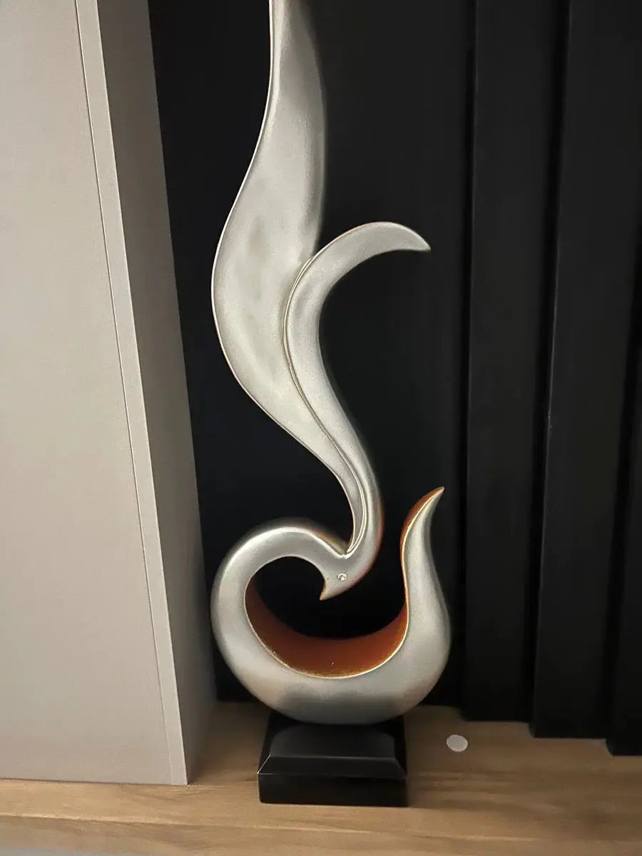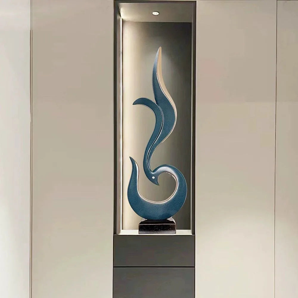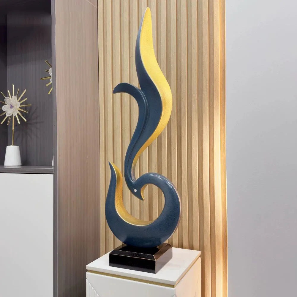 This Phoenix Soaring Statue is a striking piece of abstract art, symbolizing strength, rebirth, and resilience. Crafted with intricate detail, it serves as an elegant entrance décor ornament or a luxurious office accessory. Its dynamic design and sleek lines bring a sophisticated touch to any space, making it a perfect addition to upscale interiors. Whether displayed in a living room, office, or entryway, this Italian-inspired sculpture elevates the aesthetic with its unique and bold presence.