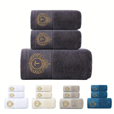 3-Piece Bathroom Classic Luxurious Crown Embroidered Cotton Towel Set