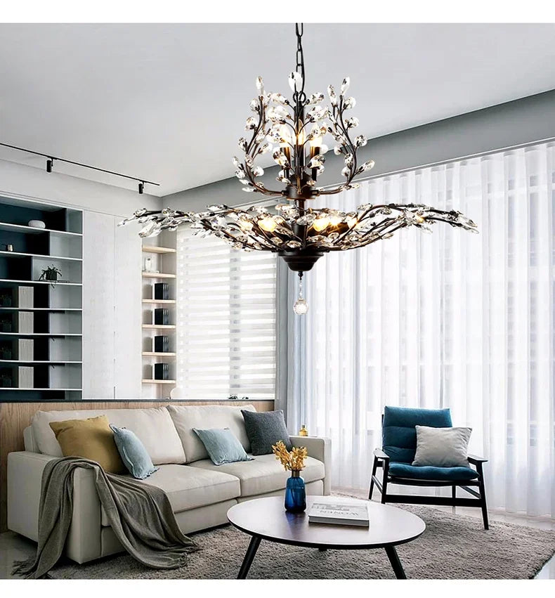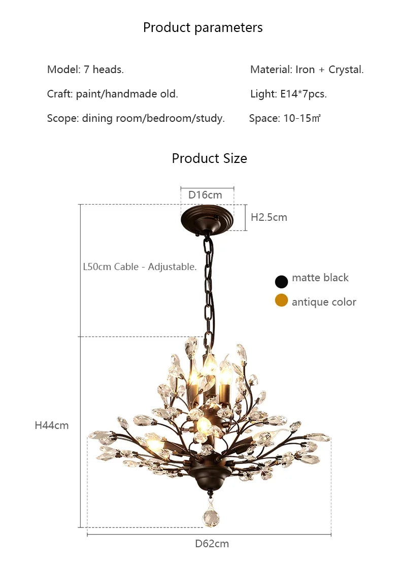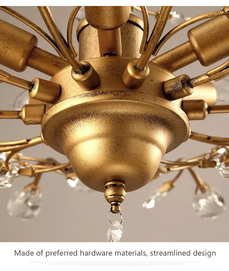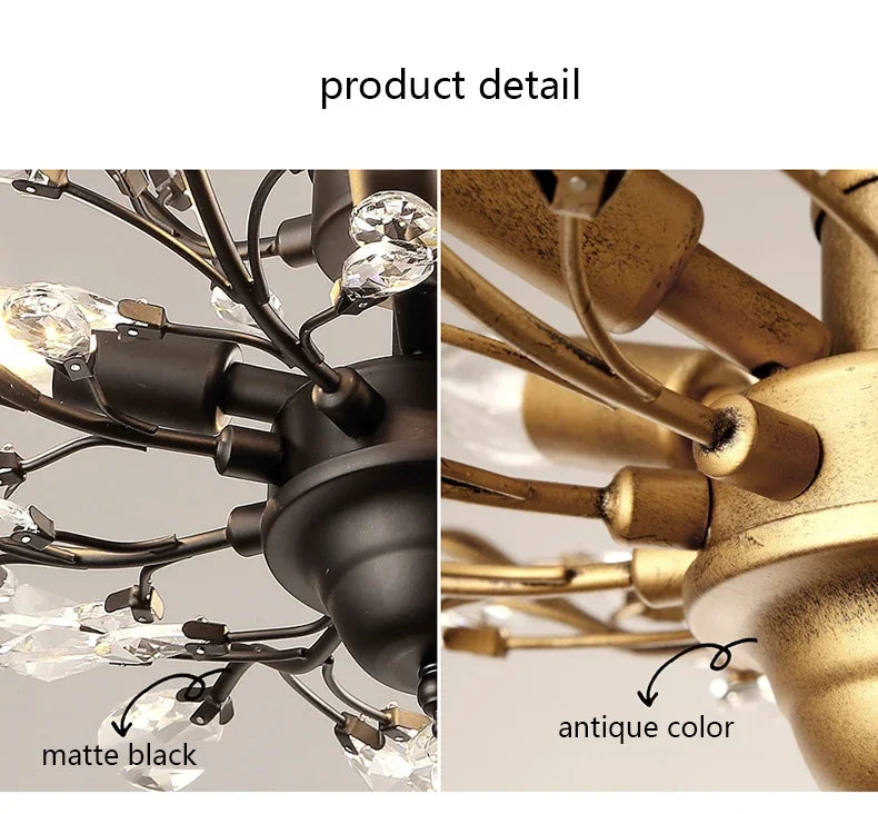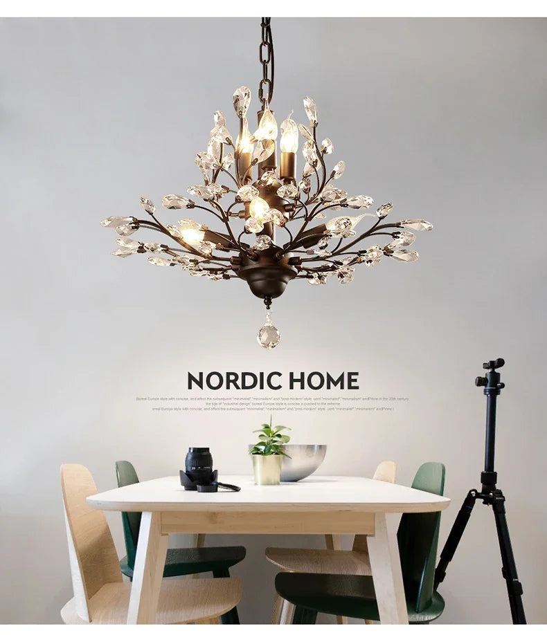 The American Vintage Crystal Chandelier combines industrial style with classic elegance, creating a stunning focal point for any space. Crafted with a sturdy metal frame, this chandelier is adorned with sparkling crystal accents, offering a perfect balance between rugged charm and refined luxury. Its vintage-inspired design makes it an ideal choice for lofts, dining rooms, living spaces, and boutique settings, adding a touch of sophistication to any décor.