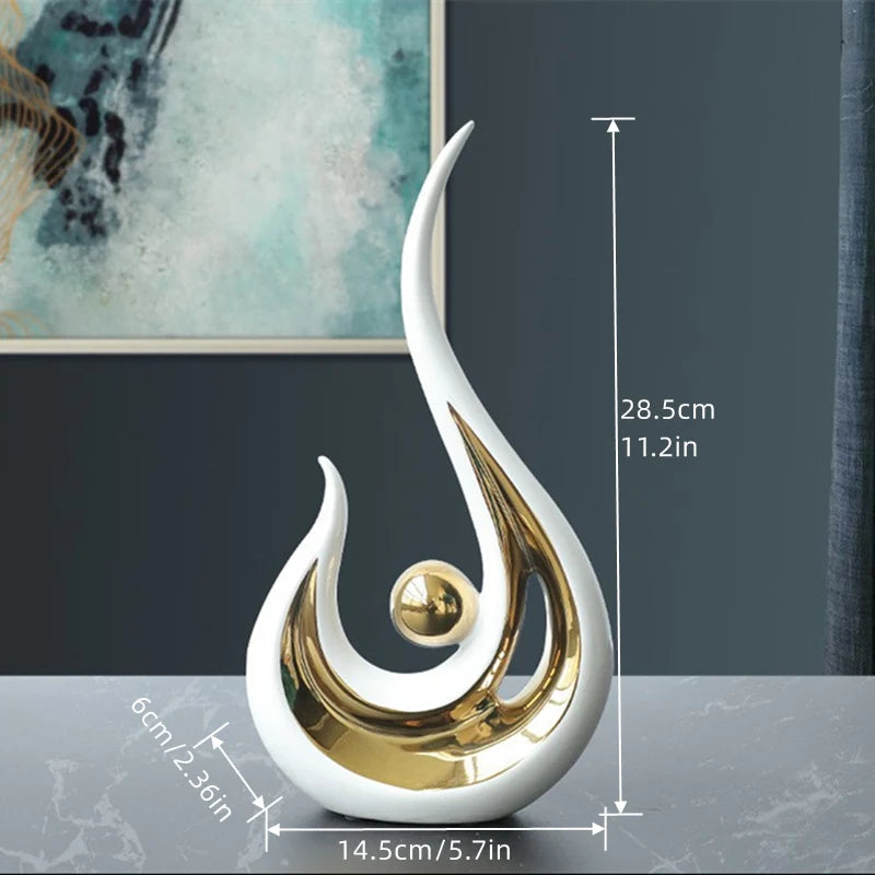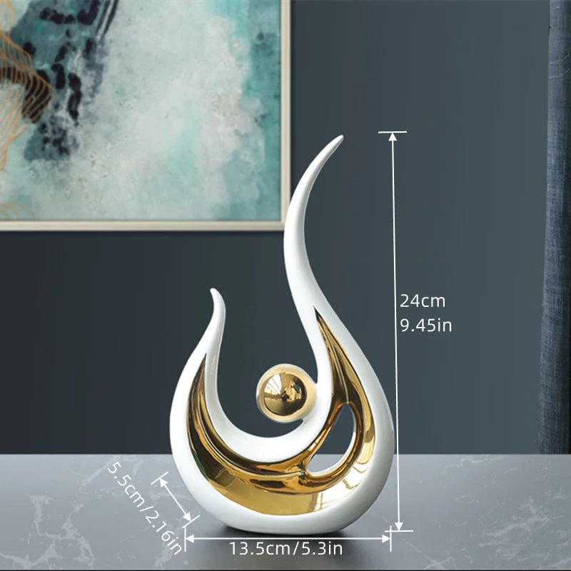 Elevate your home with the Modern Ceramic Abstract Sculpture, a beautifully crafted piece that blends contemporary art with elegant design. Made from high-quality porcelain, this sculpture serves as a stunning centerpiece for your living room, bedroom, office, or any modern interior. Its sleek and artistic form makes it a perfect statement piece, adding a touch of sophistication to tables, shelves, and mantels. Whether you prefer minimalist, abstract, or luxury decor, this figurine is a must-have for those who appreciate artistic expression.